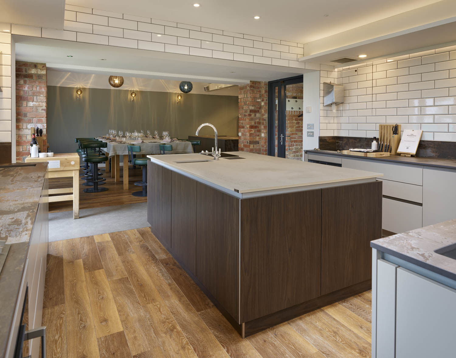 “Our cookery school has a multitude of uses. It is used for our cookery school courses which range from bread making to butchery, it is also used by us to cook exclusive lunches and dinners, and for us to train other professional chefs. It is a busy kitchen, which needed a clever design, that would bridge the gap between a commercial and domestic kitchen, ensuring that all students felt at home in the space, it was also key that the materials specified would be robust enough to cope with intense daily use.